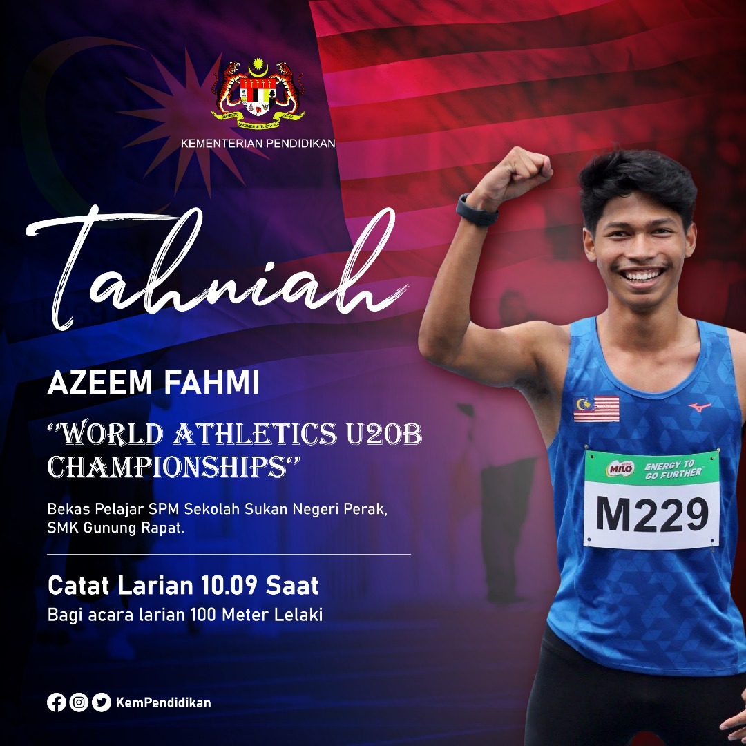 Kpm On Twitter Kementerian Pendidikan Malaysia Kpm Mengucapkan Tahniah Dan Syabas Kepada Muhd Azeem Fahmi Bekas Pelajar Spm Sekolah Sukan Negeri Perak Smk Gunung Rapat Telah Berjaya Mencatat Larian 10 09 Saat Bagi