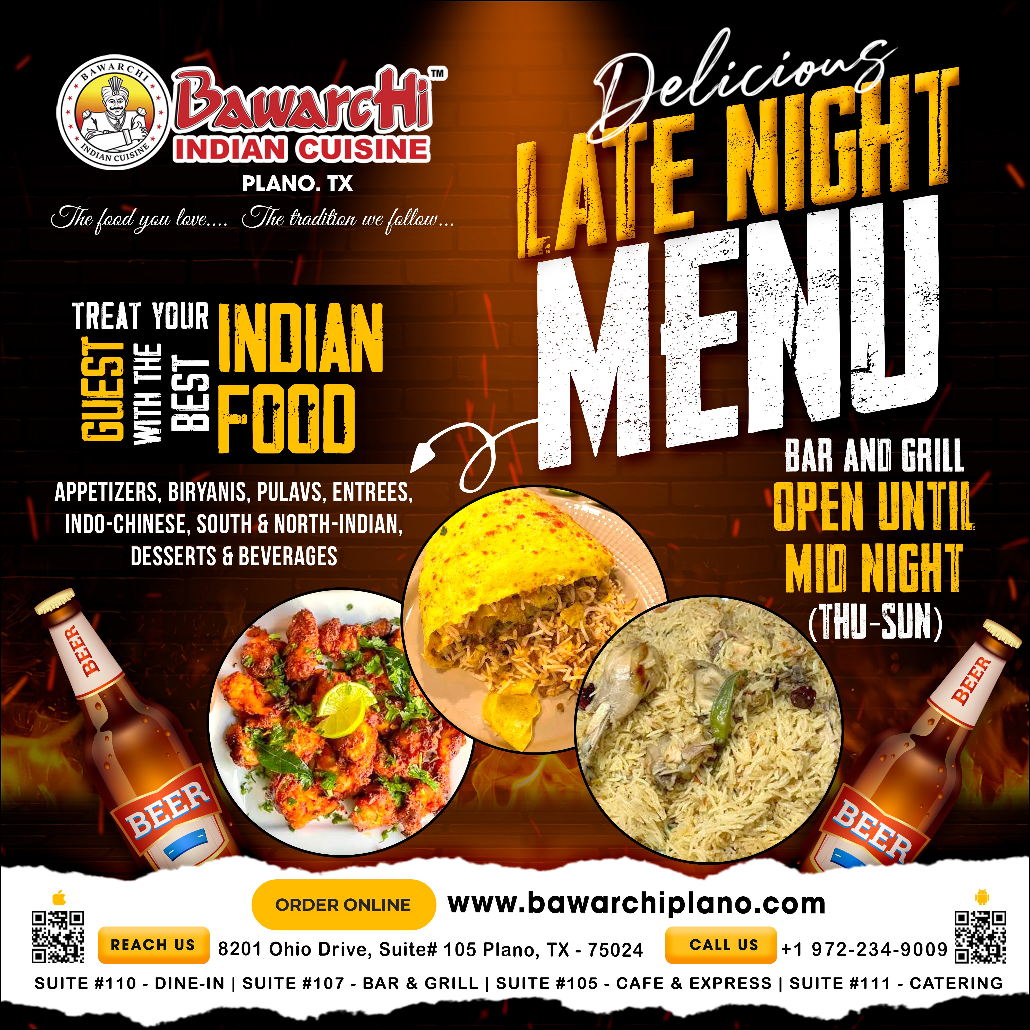 Open till 1 AM from Sunday - Thursday and till 2 AM from Friday - Saturday. We Have In-House Delivery available from 1100 AM - 930 PM daily.